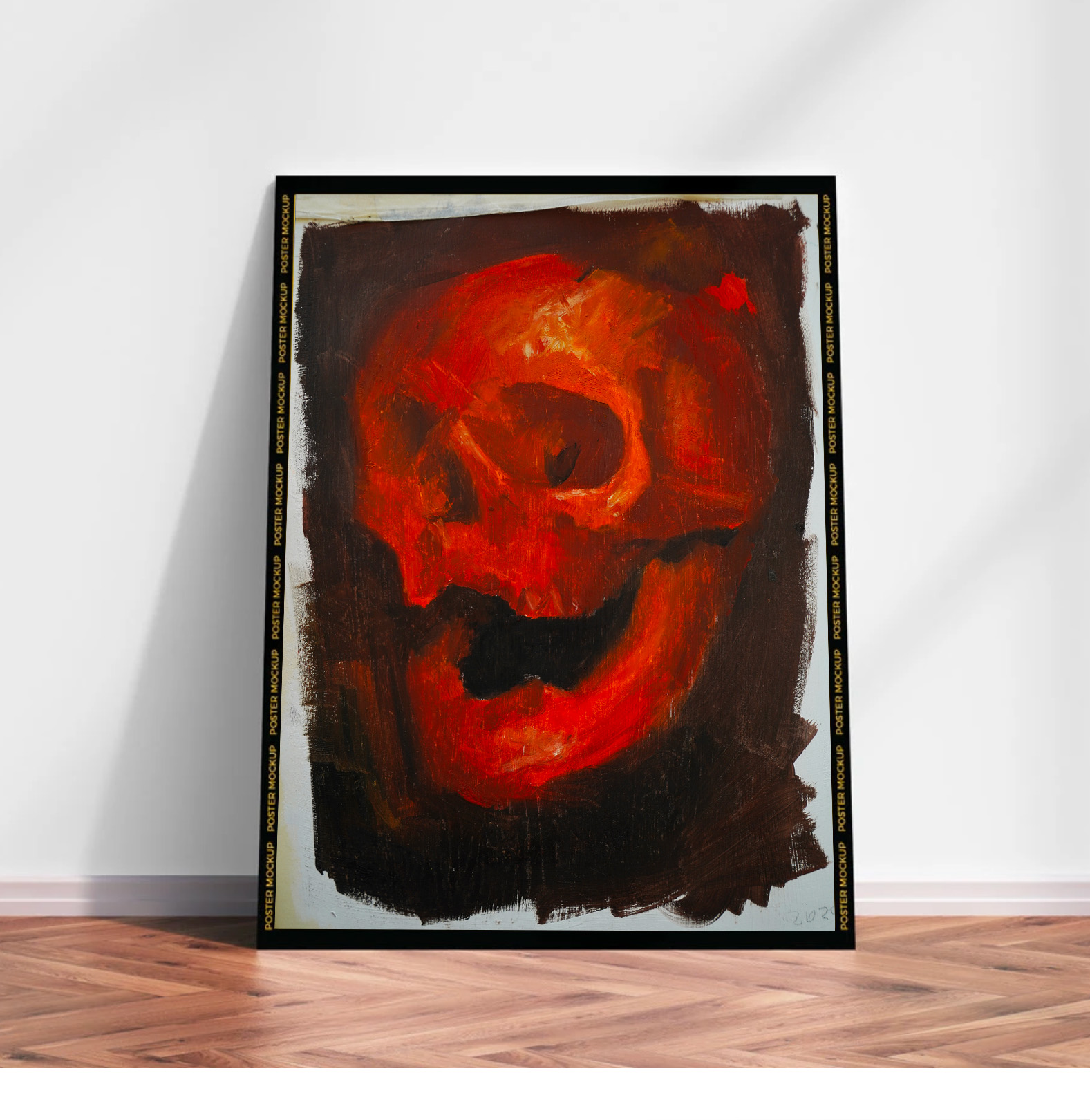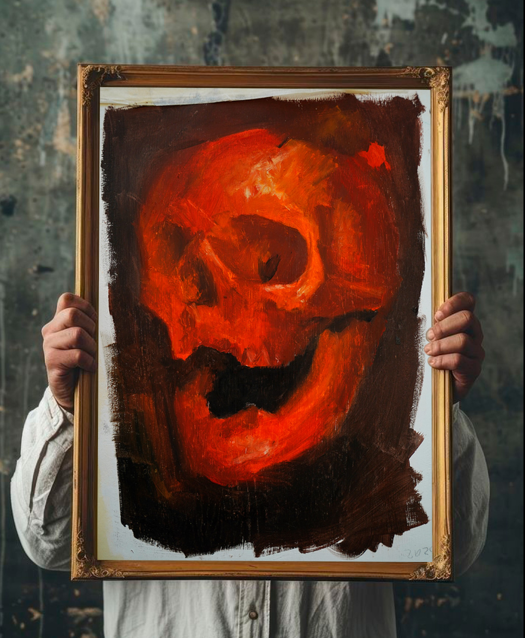 Immerse yourself in the intensity of Calaca Roja, a work that explores the symbolic power of the skull through a fiery palette of reds and oranges. This painting captures the boundary between vitality and impermanence, with a visceral energy that evokes both fire and flesh.